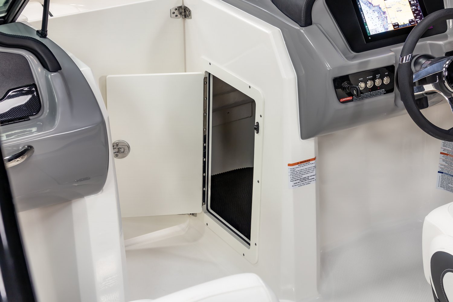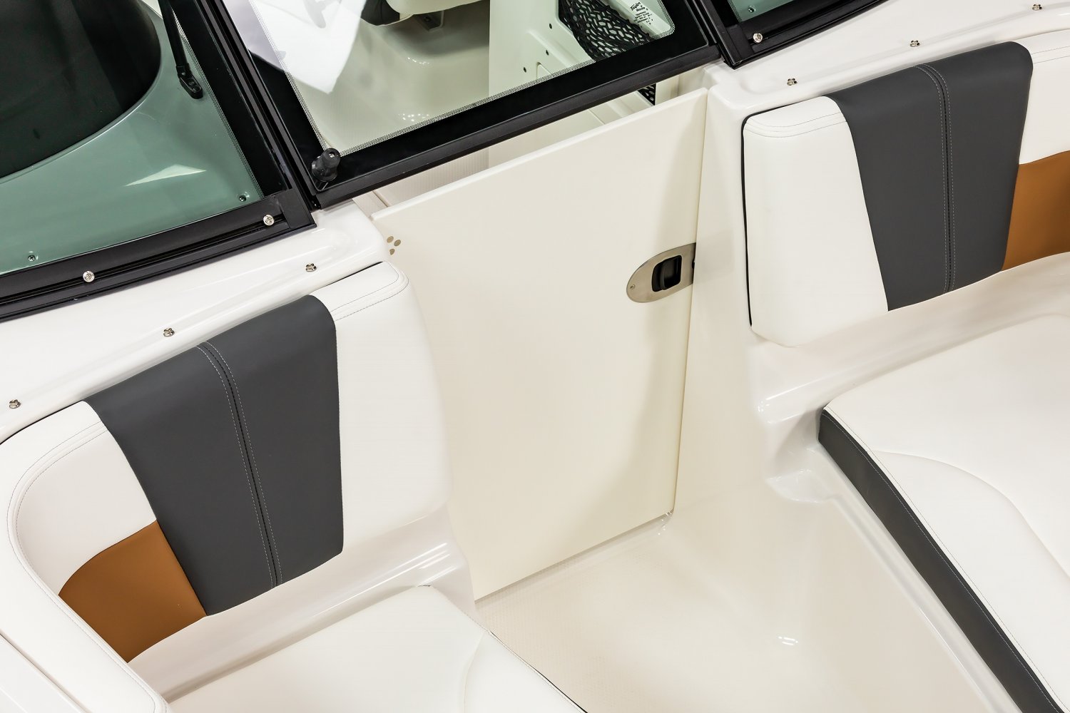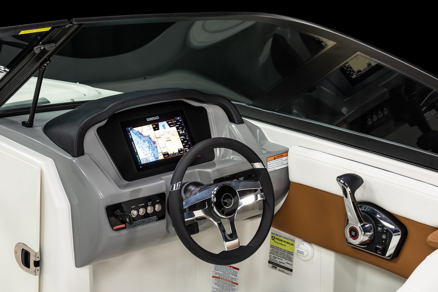 Cockpit Layout: Two Bucket Seats (Slide and Swivel) with Logo Badging, Rear Bench Seat and Aft Hinged Sundeck with Walk-Thru, Lounge Position and Aft Facing Seat