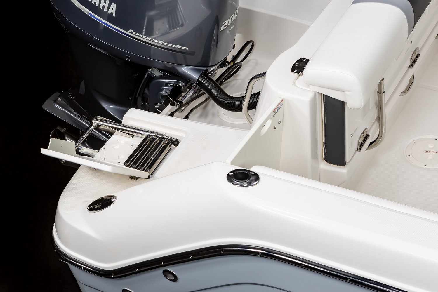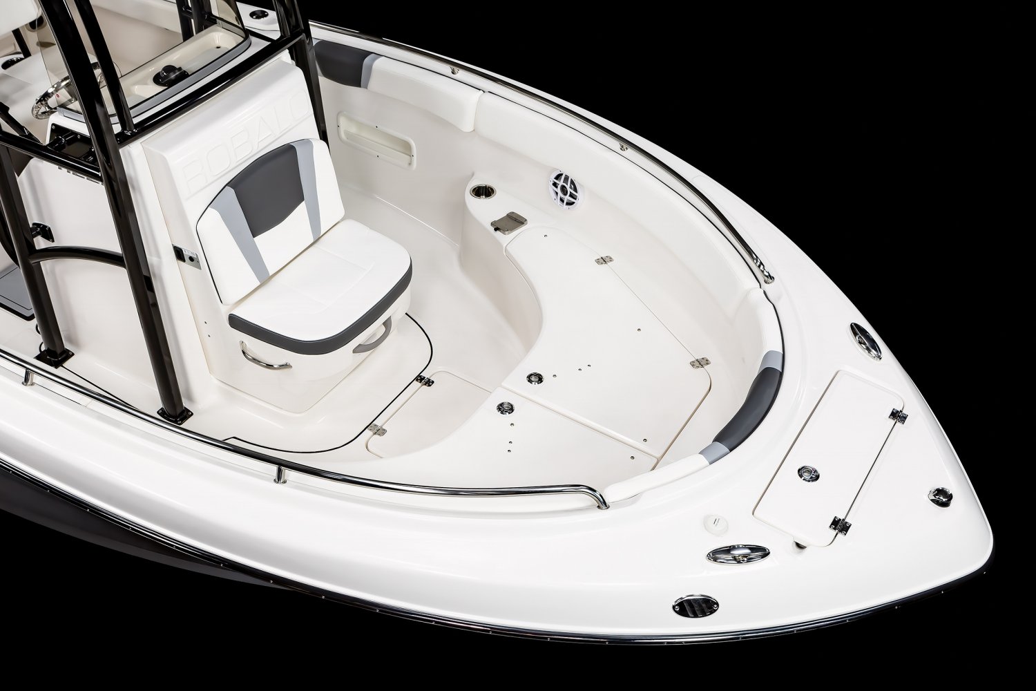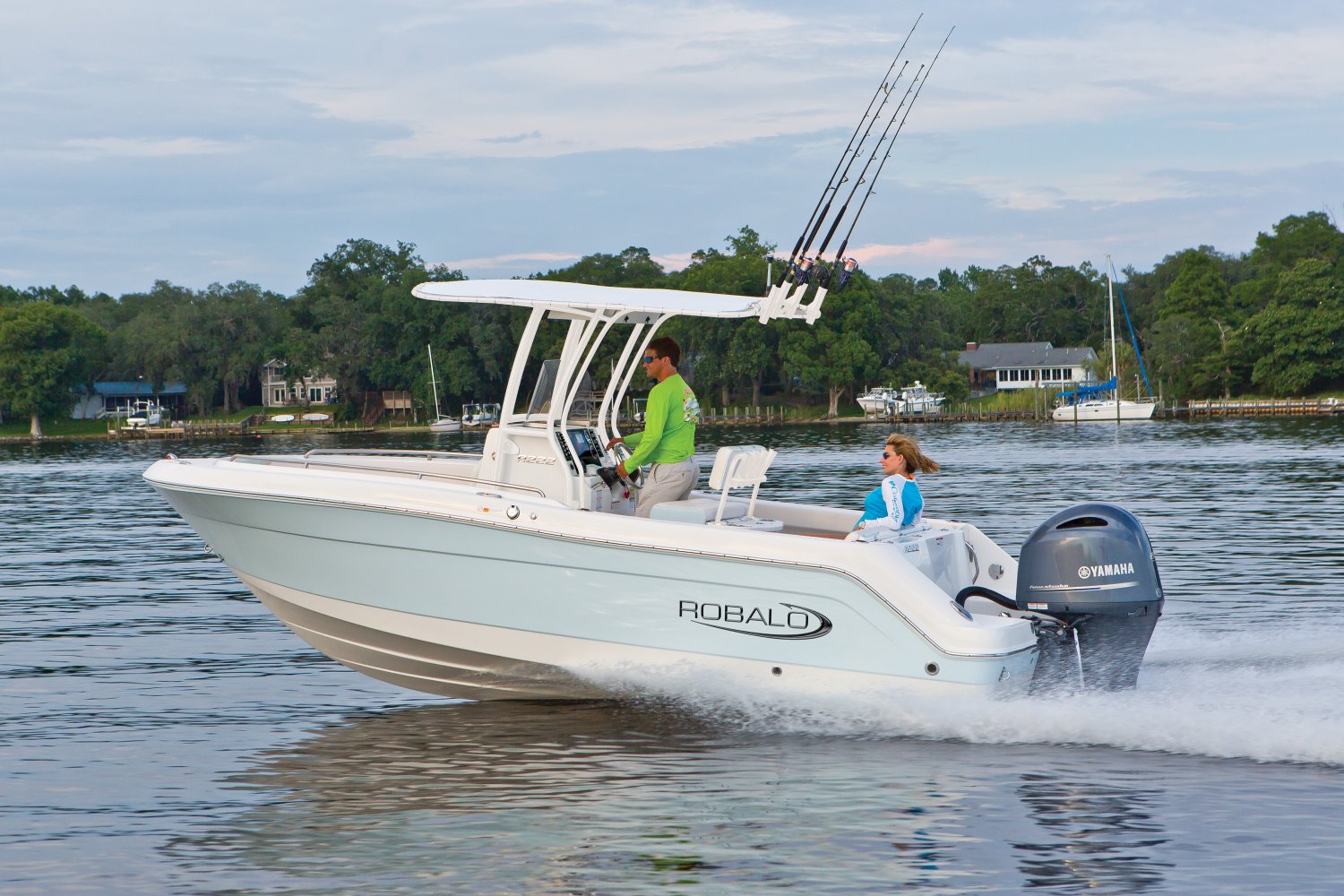 It had to happen. Parlaying the game-changing success of the R180 and the R200, Robalo takes its center console offerings up a notch with the introduction of the new R222. The R222 is sold at a nationally advertised price. The keyword here is more. More centerline length. More storage space. More ride comfort. More seaworthiness. More fishing features. The only place where the new R222 proudly comes up short is its Reel Deal price tag. Key fishing features include twin 30-gallon fish boxes that can either keep your catch fresh or serve as storage areas. A 15-gallon livewell with LED lighting and a blue gelcoat finish is conveniently positioned under the standard leaning post.