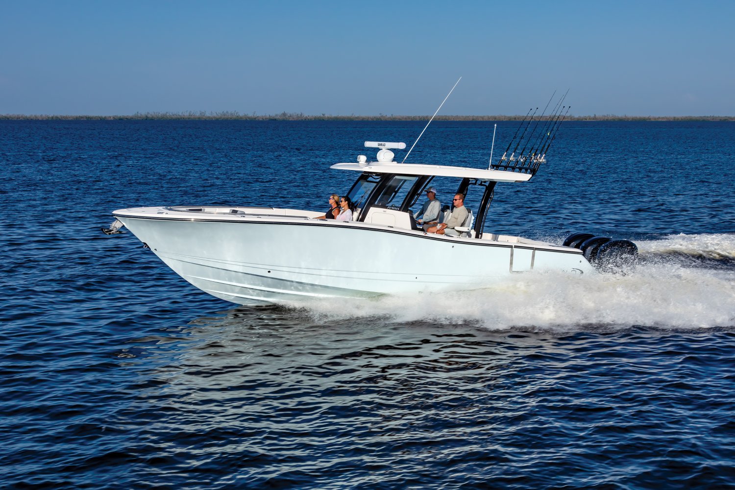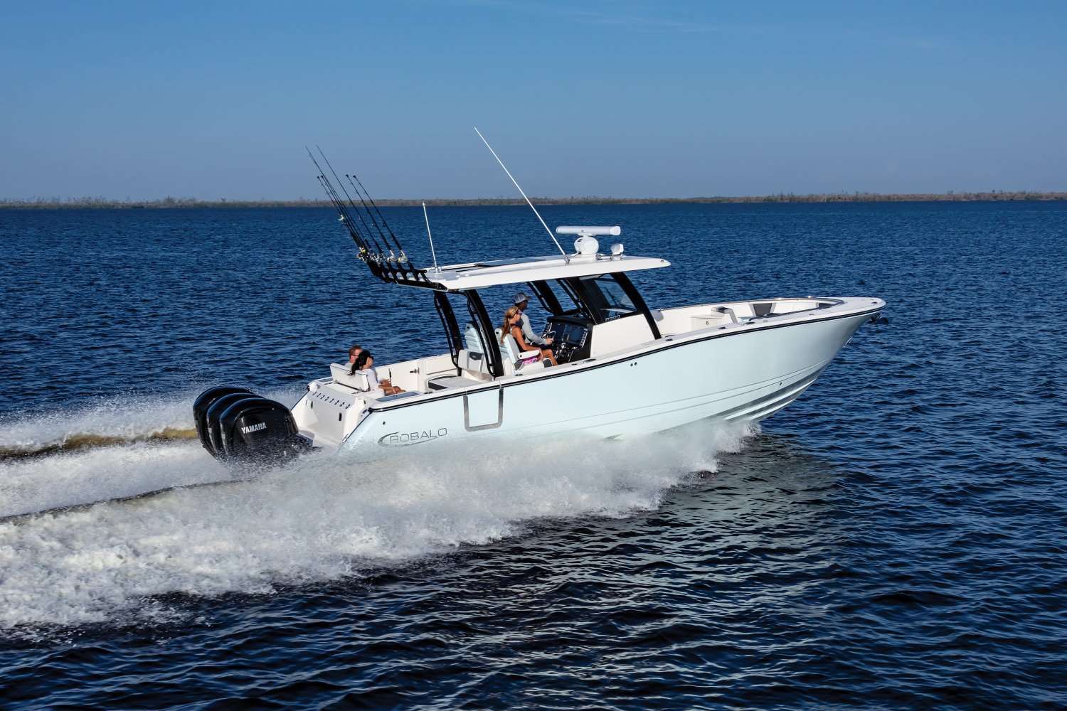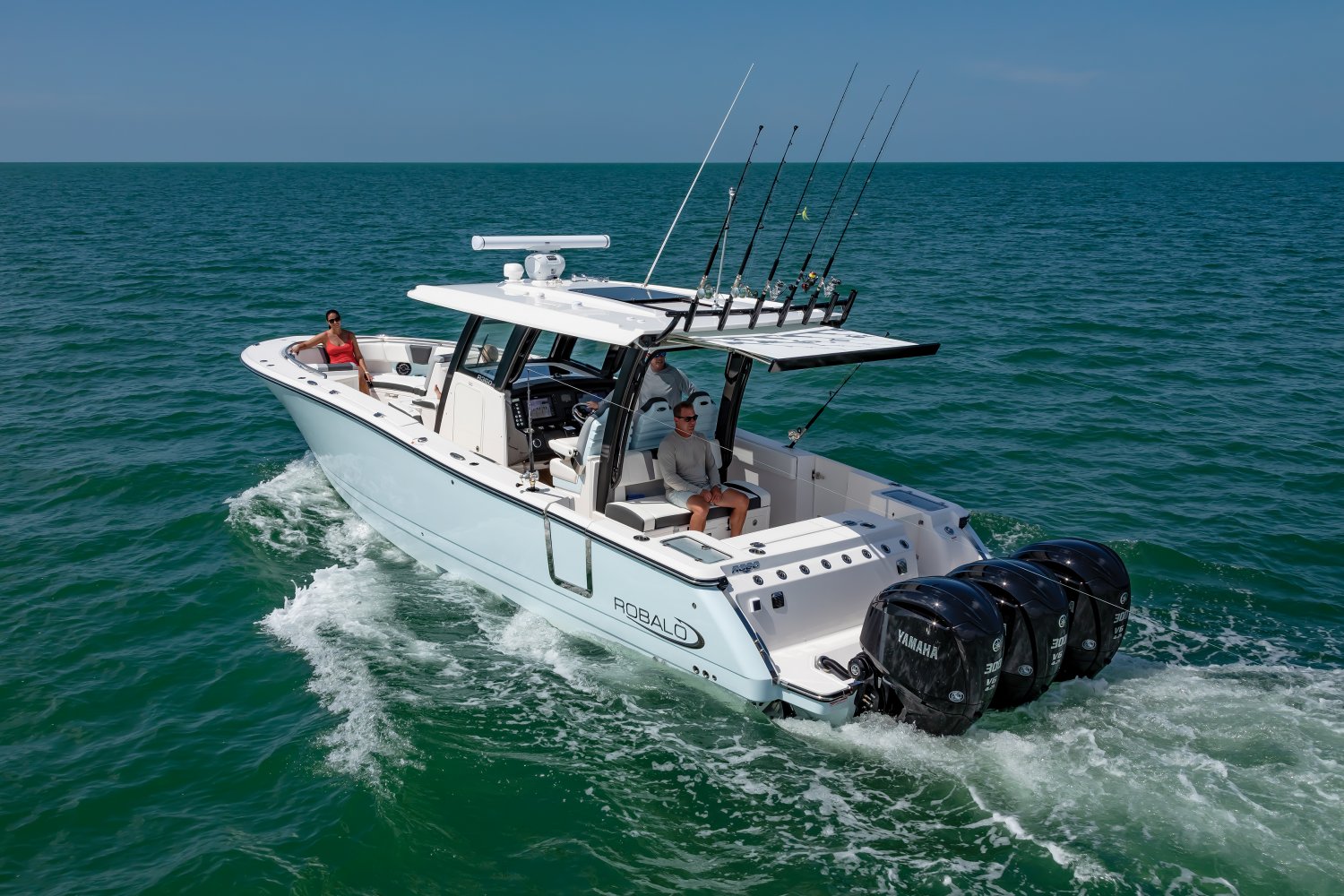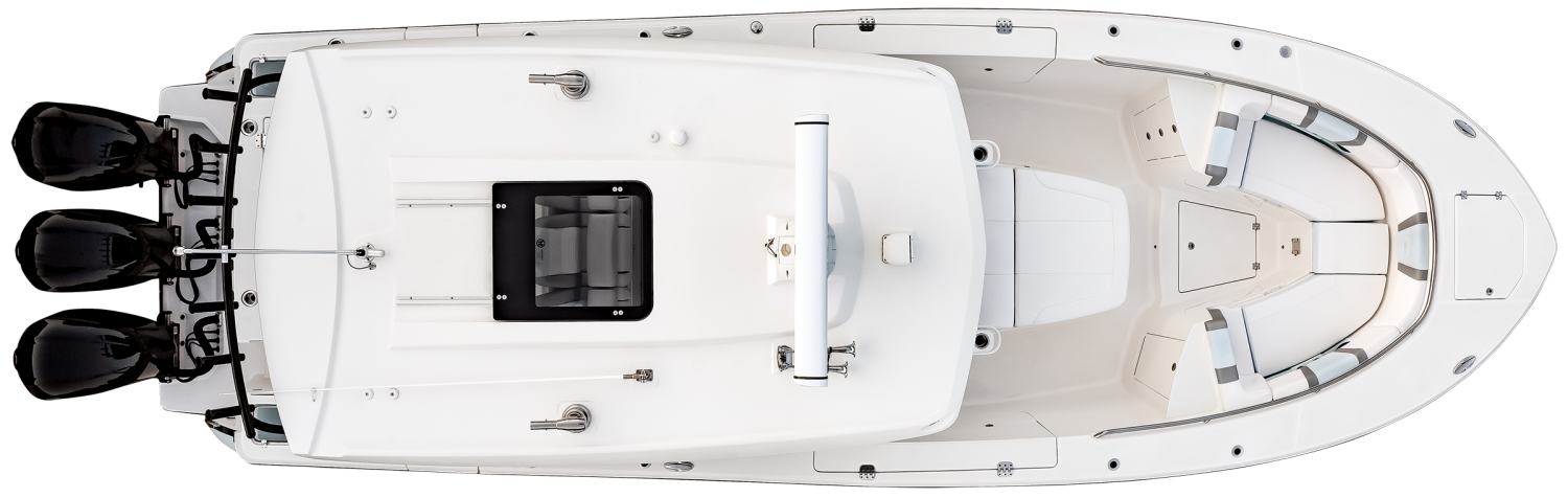Whether you're trolling with hooks in the water or motoring through the tough stuff in search of a trophy catch, Robalo's R300 center console flagship sparks an adrenaline rush unlike any other fishing boat. Unique style. Phenomenal overall performance. Dry ride. Best-in-class features. Featuring two oversized livewells, more than 245 gallons of insulated fish box capacity and a well-equipped bait prep center, the R300 is primed to tackle any fishing adventure. Combine a Kevlar-reinforced hull with a 10-year limited hull warranty and you'll enjoy complete peace of mind every time you take to the water. An abundance of rod holders ensure you're never more than an arm's length away from your equipment. The optional fiberglass T-top is the widest in its class, providing more sun protection than rivals. Robalo's 21-degree variable deadrise Hydro Lift bottom design can tame up to 700-horsepower so faraway GPS coordinates are never far away.