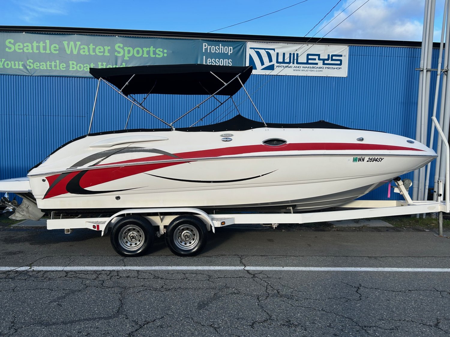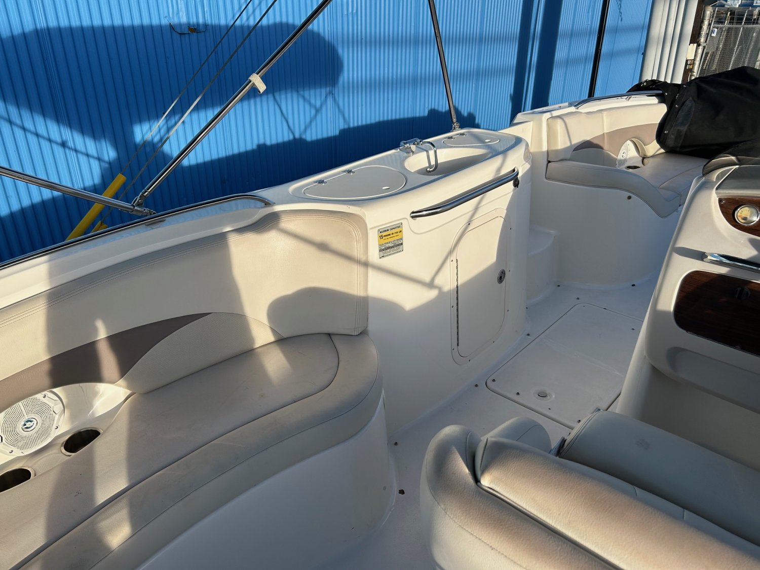 This 2005 Chaparral 252 Sunesta is an excellent family deck boat with plenty of room, amenities, and performance. Powered by a Volvo 5.7L GXi duo-prop with only 296 hours, it has strong acceleration, great handling, and a smooth cruising experience. The layout includes a massive swim platform, comfortable bow seating with a filler cushion, and an enclosed head compartment that also works well for extra storage. A double-wide helm seat with flip-up bolster, wet bar, walk-through transom, bow & stern swim ladders, transom shower, and a large transom trunk make this boat perfect for entertaining. This Sunesta also includes docking lights, dual batteries with switch, bimini top, in-floor storage, and more. The boat just received a new fuel pump and a freshly serviced outdrive. Mechanically, it's in great shape and makes a fantastic party and family fun boat.