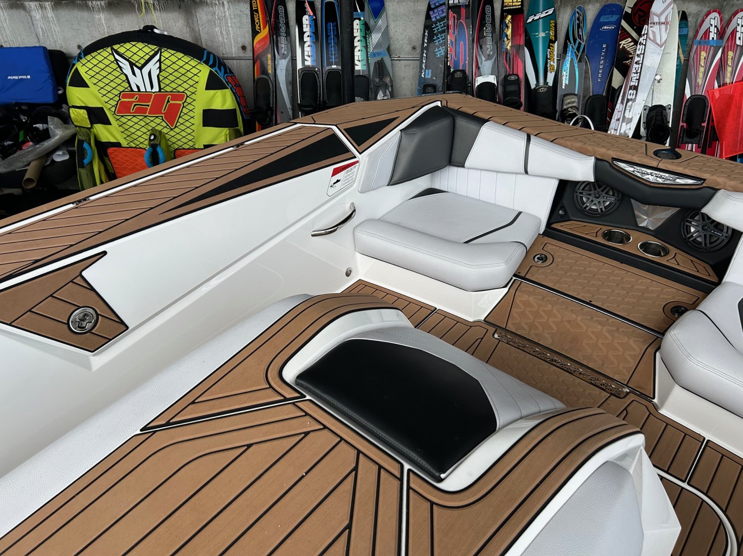 The 2019 Ski Nautique is a performance-focused waterski boat designed to create ideal wakes and smooth handling. Its lightweight carbon fiber and fiberglass construction ensures soft, precise wakes. Key features include a 12.4-inch LINC Panoray touchscreen for easy control, MicroTuner technology for optimal wake shaping, a low-profile dash for better visibility, and a modern interior with premium materials. Ample storage is available for skis and gear, with lockable gunnel compartments and under-seat storage. This pre-owned Ski Nautique is powered by a PCM 6.0L ZR4 engine with 400 hp and has only 282 hours. Other highlights include a walkthrough transom for easy swim platform access, upgraded JL Audio system, Zero Off cruise control, multiple USB ports, heater, and SeaDek flooring on the bow for dock or beach boarding. This boat is ideal for competitive skiers, wakeboarders, or anyone looking for high-performance watersport fun.
