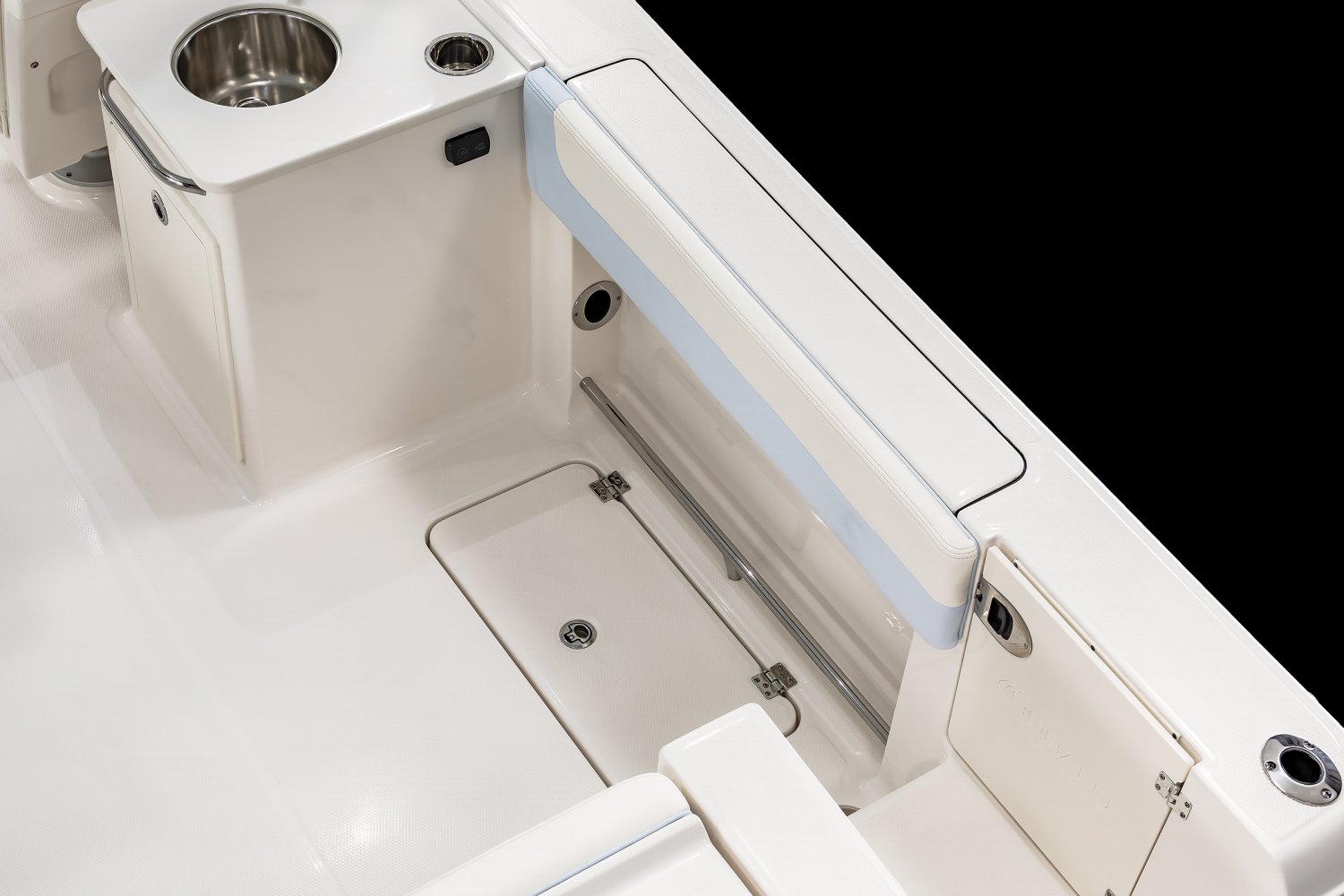 2026 R257With no shortage of comfortable seating from bow to stern and plenty of deep storage compartments, the R257 makes those long days exploring on the water carefree and enjoyable. Fishermen will love the twin 50-gallon fish boxes, the 30-gallon aft livewell, and all of the rod holders throughout. Passengers will be sure to appreciate the standard oversized hardtop featuring a new, stylish D-shaped frame engineered to reduce clutter and visionary obstructions for the captain. If you are looking for a do-it-all, 25-foot dual console, no need to look further.