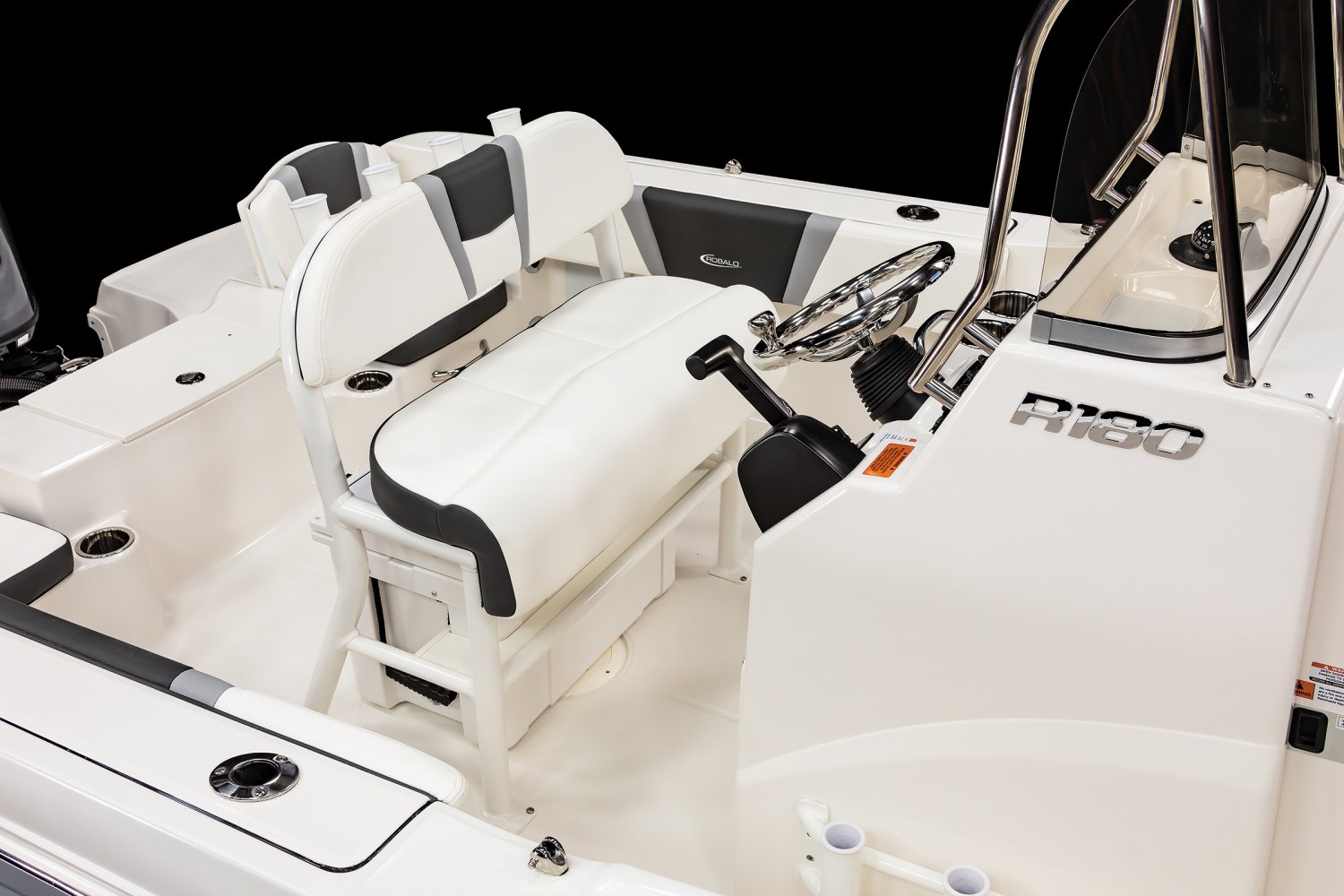The Robalo R180 is was specially crafted with adventure in mind.Equipped with twin aft seats with heavy duty hardware are comfortable, supportive and fold out of the way for fishing. Storage is available under both aft seats and allows easy access to onboard systems and speedy servicing. A telescopic boarding ladder invites you to enjoy the R180 for wakeboarding, swimming, diving, snorkeling or just good old-fashioned family fun.