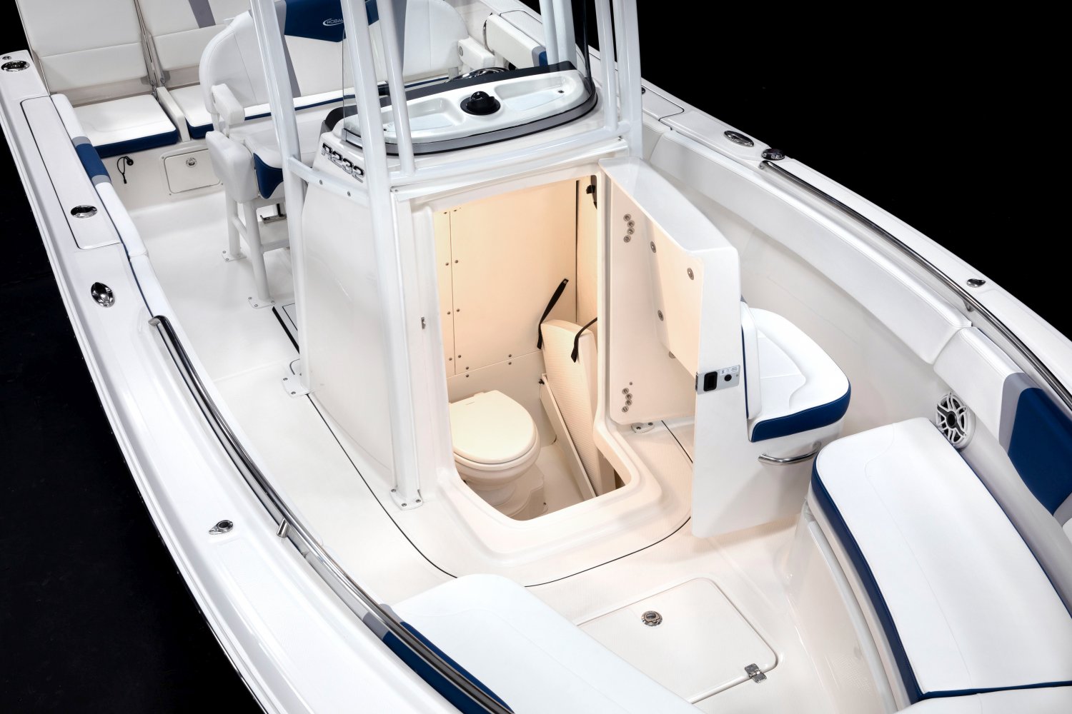 Solid Hull Alloy Gray Gel Coat Yamaha Four Stroke White F250XSB2 250HP 25" with Digital Electric Steering Cockpit Interior - Harbor Mist Canvas Color - Black (If Equipped) Canvas Accessories Color - Black (If Equipped) Hard Top Complete (Black Powder Coated) Hardtop Underside Gel Color - Alloy Gray Forward Canvas Fly - Black Canvas Leaning Post Cover and Console Cover Trim Tabs with Indicators Seadek Helm Mat - White Gravity Discharge Toilet with 6.5 Gallon Holding Tank Bow Filler Cushion Bow Table with Dedicated Storage Leaning Post with Backrest, 4 Rod Holders, Dual Flip Up Bolsters and Cooler - Black Removable Bow Seating Backrest Stainless Steel Drink/Rod Holders (2) Cockpit Coaming Tackle Storage with Removable Boxes Custom Anchor Fresh Water Shower 5 Year Premium Level Limited Component Warranty Prep Fee Standard Aluminum Trailer