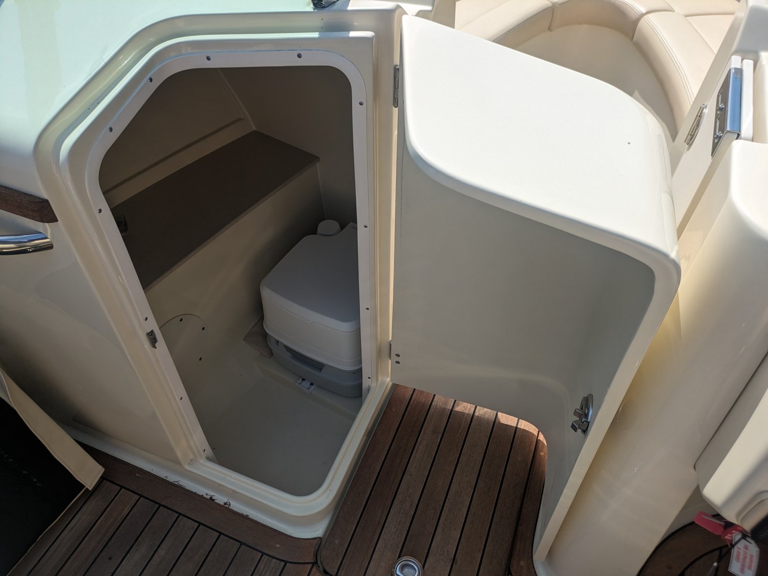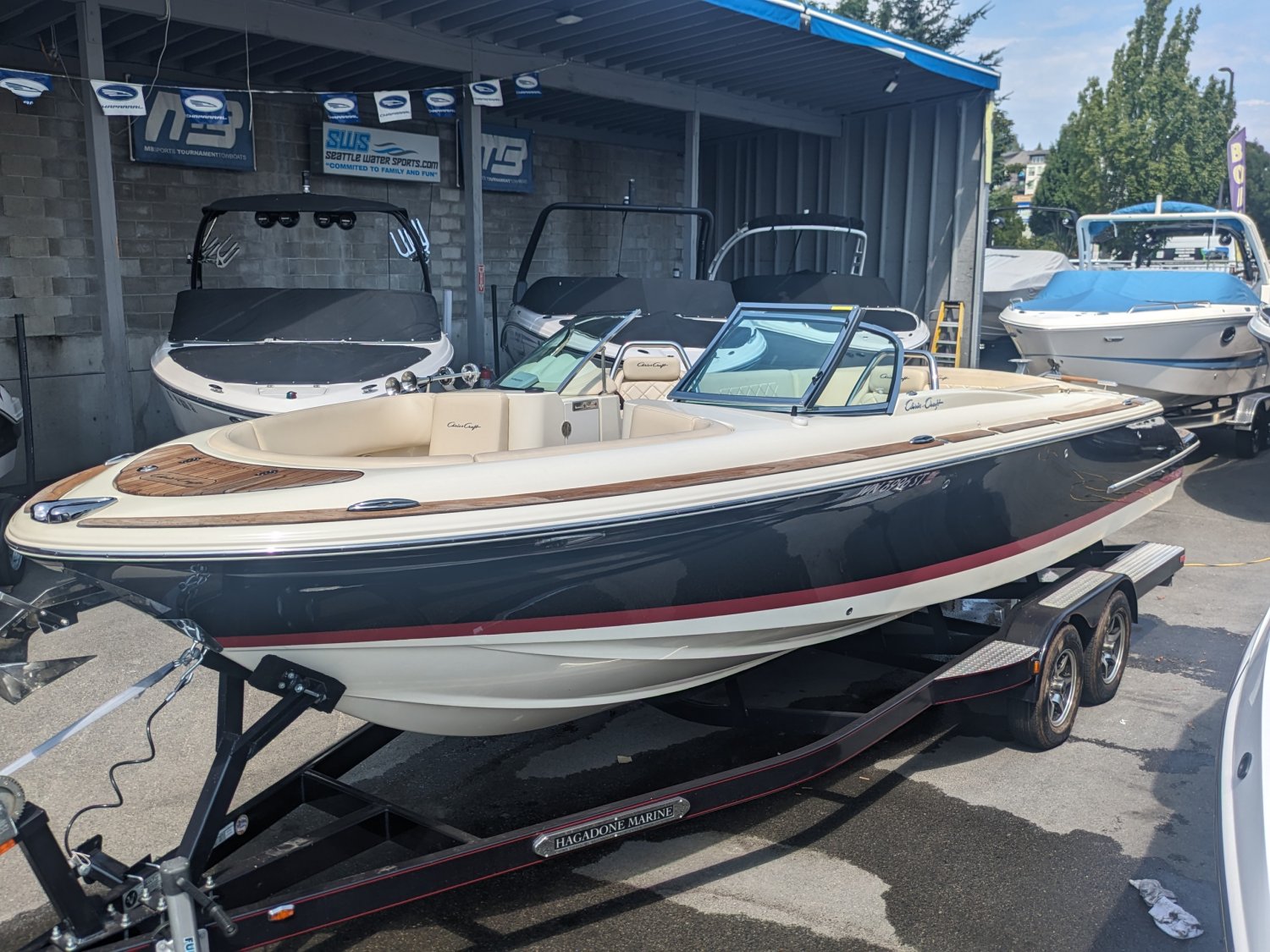 Stand out on the water with this pre-owned 2018 Chris-Craft Launch 27 – Surf Edition, a limited edition model with the exclusive SURF package. Known for its craftsmanship, luxury materials, and elegant design, this Chris-Craft combines performance, style, and functionality. Every detail has been carefully built by hand, from custom stainless-steel hardware to meticulously applied teak. The cockpit features a wide captain’s chair, diamond-pattern stitching, a mahogany steering wheel, stainless steel accents, and a thigh bolster for enhanced visibility. Powered by a Volvo V8-380 FFD engine and with only 95 hours, this 26’ bowrider is equipped for family fun, watersports, and entertaining. Key features include a ballast system, bimini top, dual batteries, extended swim platform, teak swim platform, in-floor storage, pedestal seats with bolster, ski tow bar, stainless cockpit refrigerator, SURF package, and a custom tandem galvanized trailer. Fuel capacity is 77 gallons, and the boat accommodates up to 10 passengers.