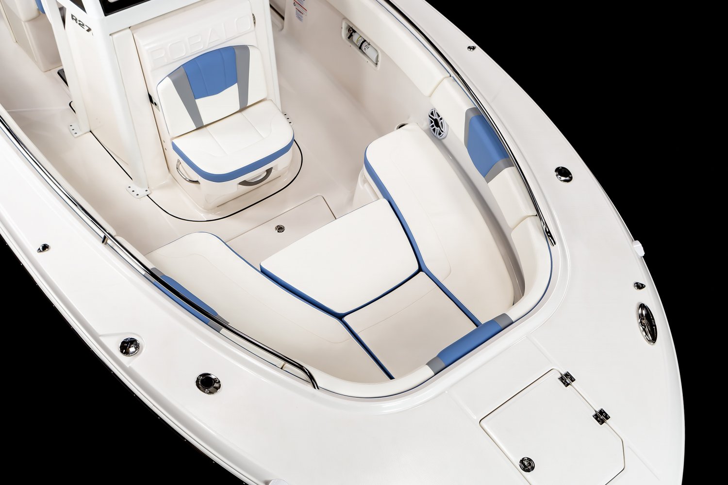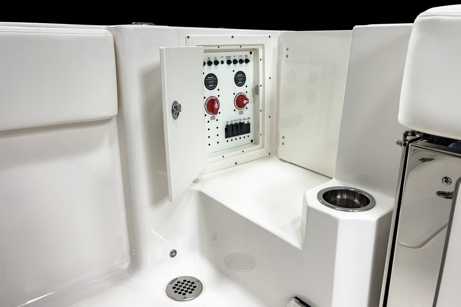 2026 R270The R270 gives you a smooth and sturdy ride while remaining responsive. Quick plane times and our Hydro Lift™ Multi-Angle Hull will deliver you consistent performance that will thrill you every time you take it out. The large door on the front of the console gives you an easy way to the head where you can access the standard porcelain toilet. Two 50-gallon fish boxes are hidden in the floor of the cockpit with a 30-gallon livewell mounted into the aft gunwale. Our Kevlar-reinforced hull with a Lifetime Limited Hull warranty and 5-year component warranty will give you the peace of mind and confidence to charge into your next adventure.