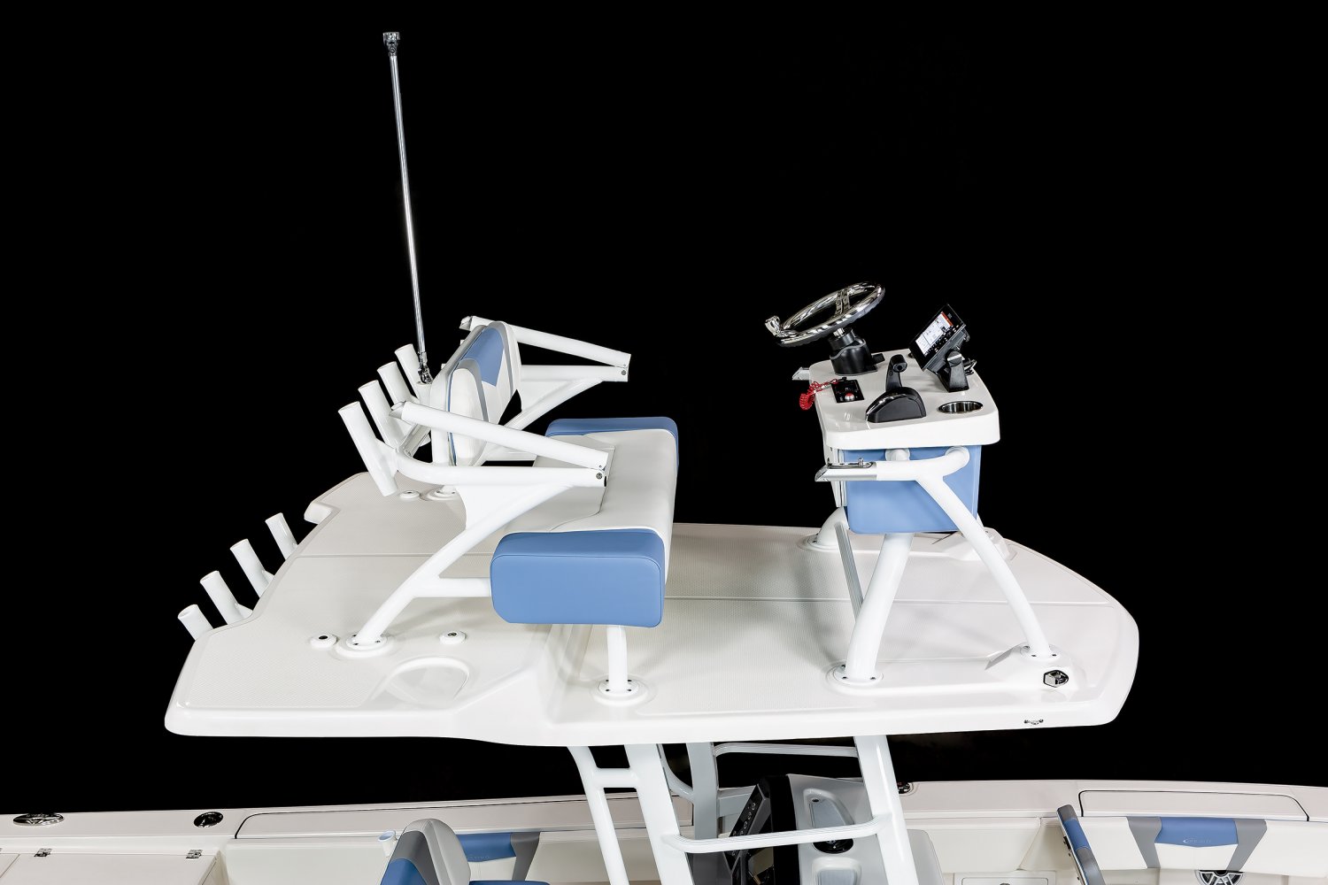 Give yourself the advantage you've been looking for. The 266 Cayman SkyDeck has been designed from the ground up to help you catch fish. The bow features an elevated casting deck that smoothly transitions to the wide gunnels that run around the boat. Cushioned seats and an enclosed head help keep you comfortable on all-day trips. The second station, from where the SkyDeck gets its name, gives you an unbeatable vantage point that is great for both navigation and fishing. Rod holders and storage compartments have been built into every surface of this boat so you can use all of your deck space for fishing. From offshore to narrow creeks, this bay boat will keep you in the middle of the action.