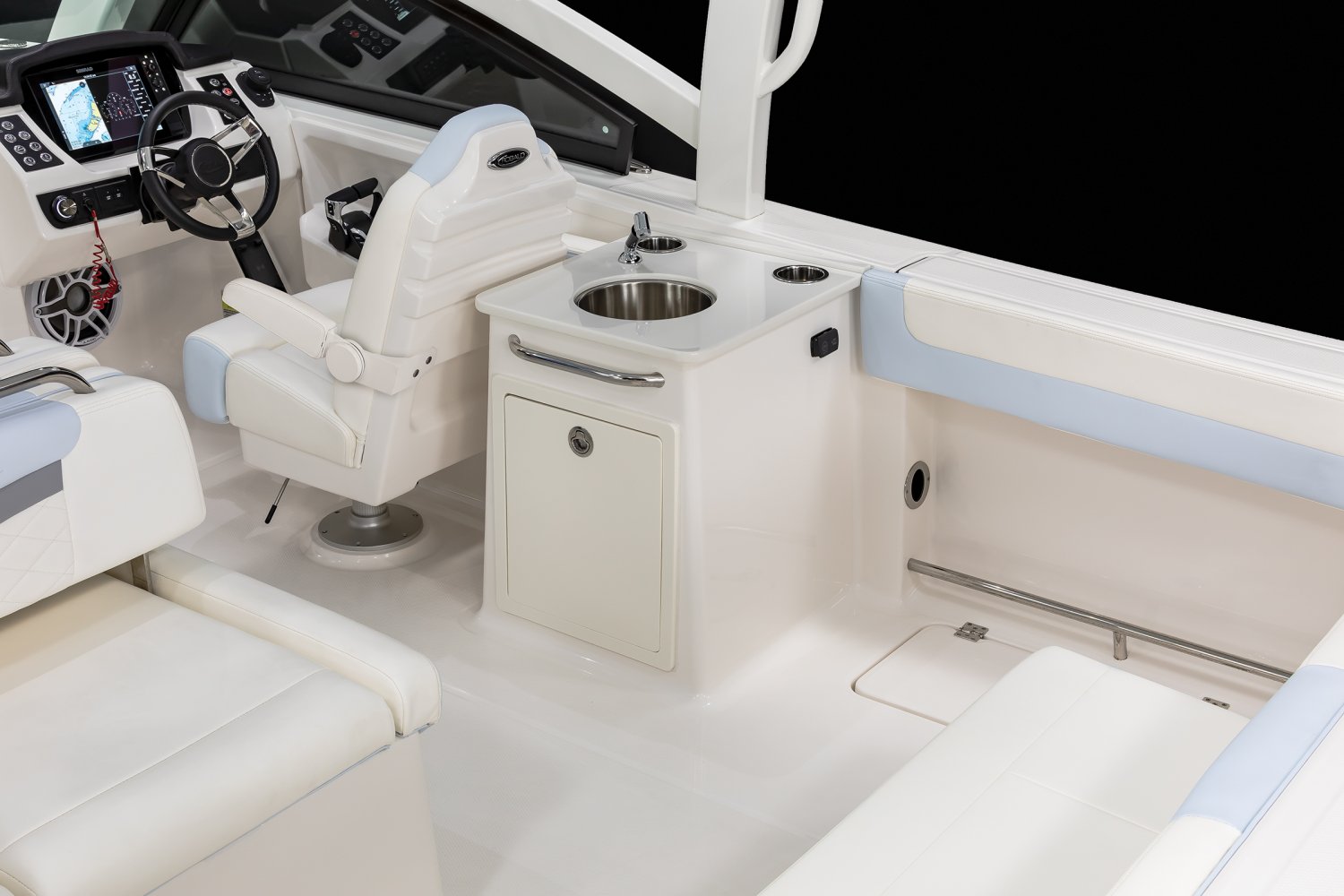 2026 R257With no shortage of comfortable seating from bow to stern and plenty of deep storage compartments, the R257 makes those long days exploring on the water carefree and enjoyable. Fishermen will love the twin 50-gallon fish boxes, the 30-gallon aft livewell, and all of the rod holders throughout. Passengers will be sure to appreciate the standard oversized hardtop featuring a new, stylish D-shaped frame engineered to reduce clutter and visionary obstructions for the captain. If you are looking for a do-it-all, 25-foot dual console, no need to look further.
